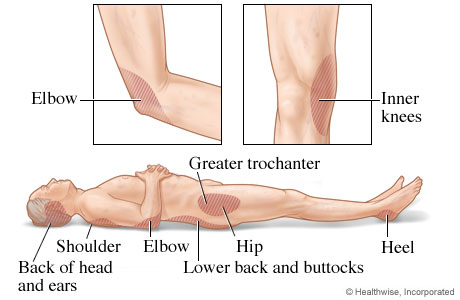 - Check your skin every day for signs of pressure injuries. Pay special attention to bony areas such as the hips, elbows, knees, and heels. Also watch for pressure from sources such as: